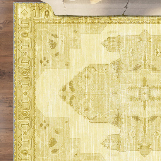 Adrian Yellow Oriental Washable Rug – Brighten Your Space with Timeless Elegance