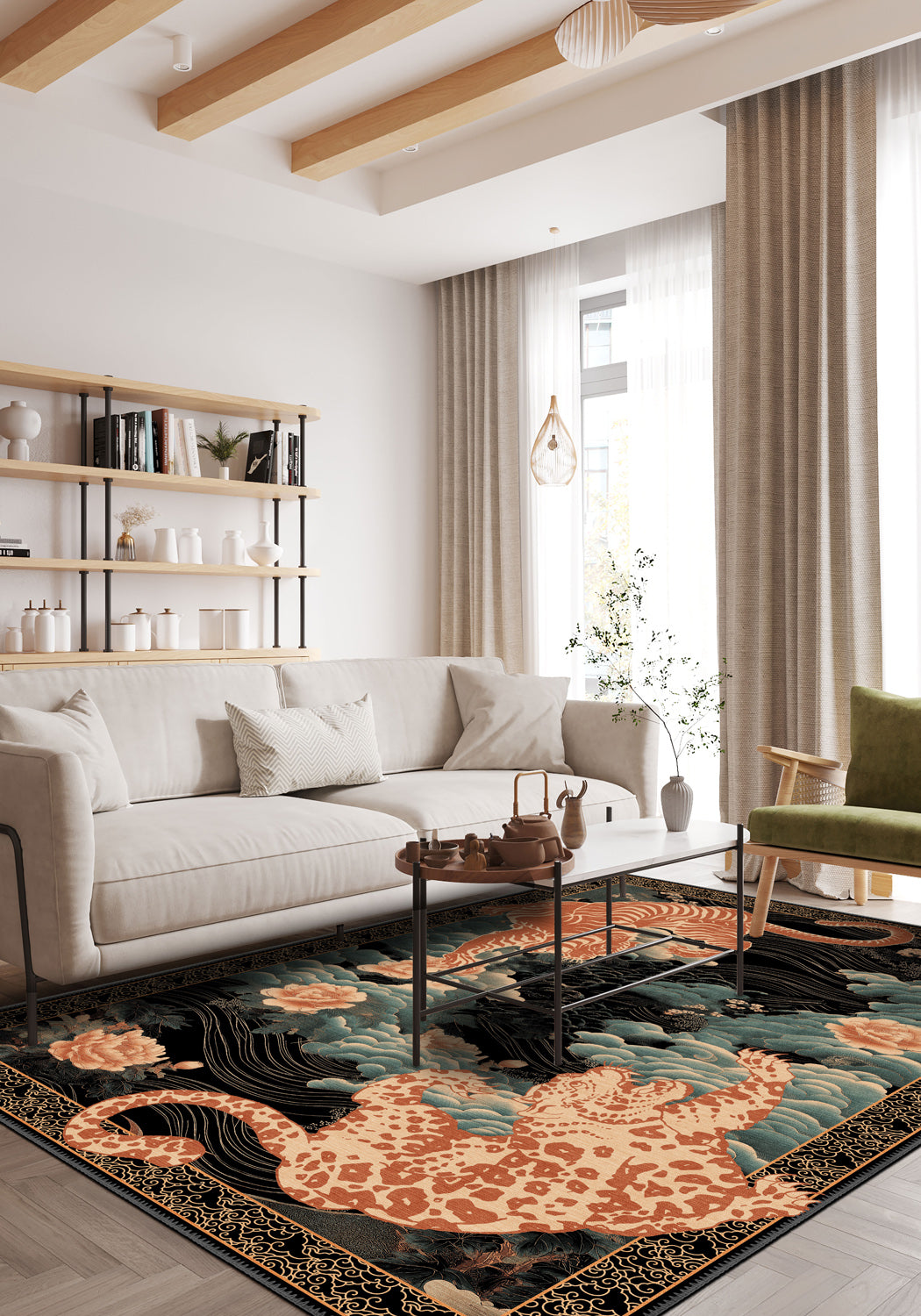 This rug isn’t just decor—it’s an experience. The dynamic tigers symbolise protection and courage, while the peonies whisper opulence and fleeting beauty. Together, they transform your floor into a living artwork—something to be admired, walked upon, and talked about.