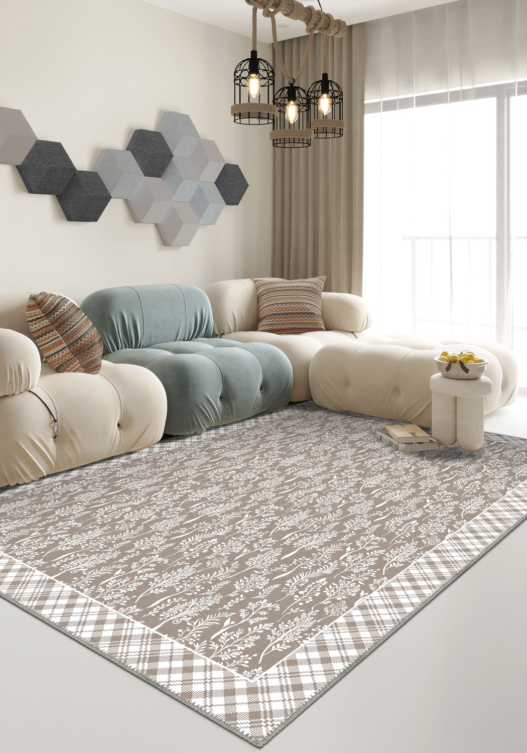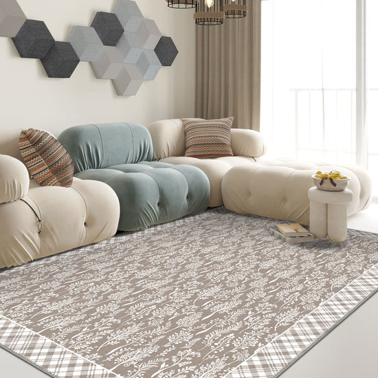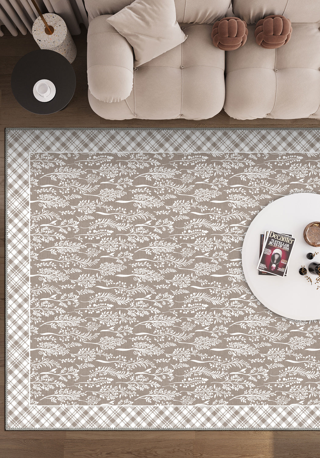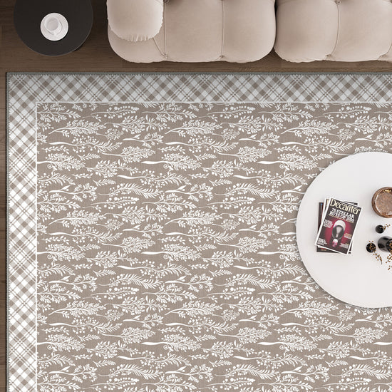 The Alder Cottagecore Taupe Rug is soft, grounding, and timeless. With its gentle taupe background blooming with delicate white wildflowers and framed in a traditional gingham border, this design is the essence of rustic elegance. It's the kind of rug that makes a space feel instantly warm, like homemade bread or a handwritten letter.