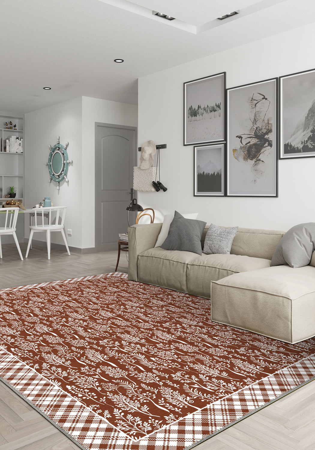 It’s that graceful pairing of clean floral silhouettes and a checkered gingham border—reminiscent of vintage linens and heirloom gardens. This rug doesn’t just lie there; it whispers stories of summer afternoons, fresh herbs on the windowsill, and warm pies cooling on the counter.