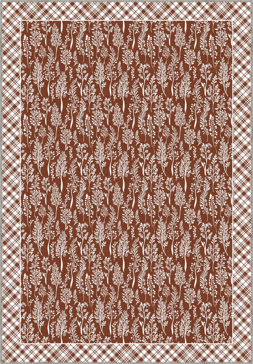 Encased in a softly structured checkered border, the overall design is a sweet nod to countryside textiles, echoing the feel of a hand-stitched quilt or a well-loved tablecloth. There’s a quiet poetry to this rug—something you can almost feel underfoot. And yes, it’s washable, making it just as practical as it is pretty.