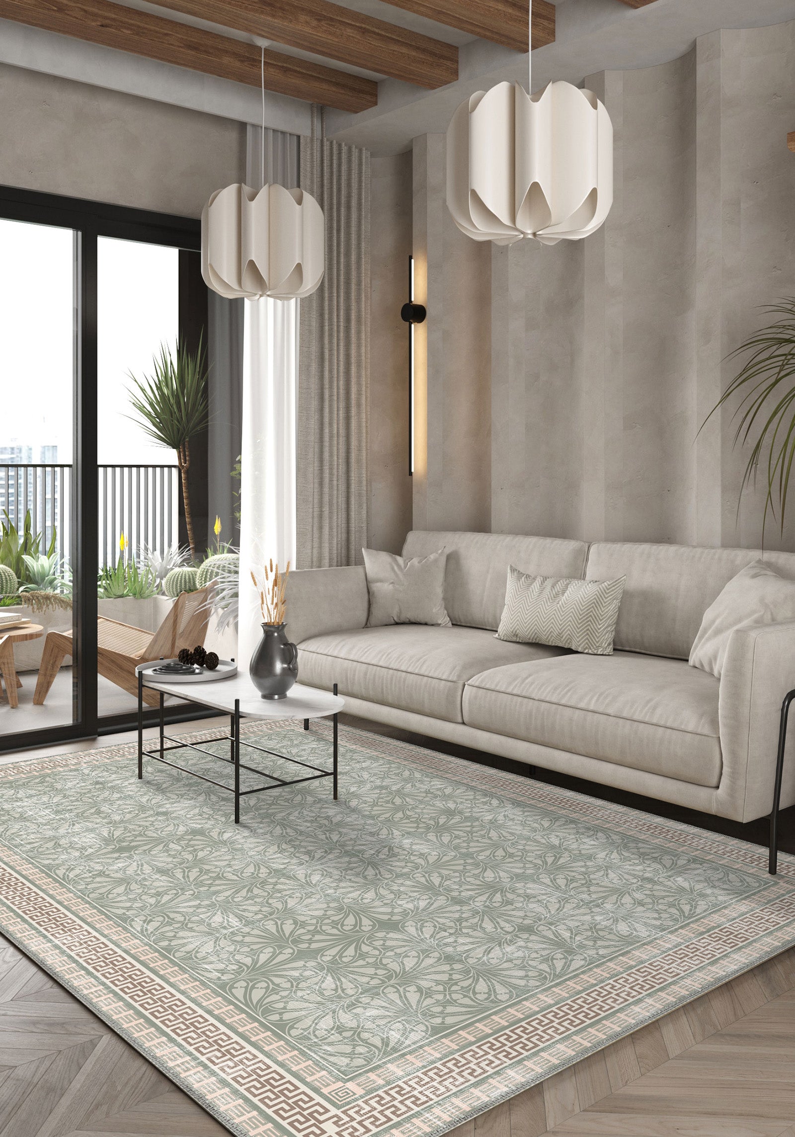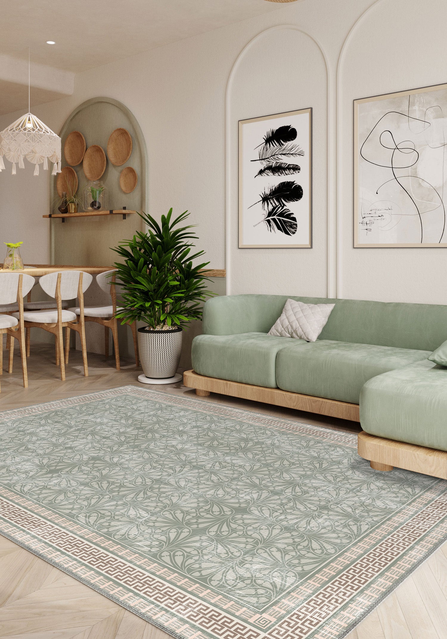 - Soft Pastel Hues: The gentle blend of green and cream tones allows this rug to blend seamlessly into a variety of color schemes.