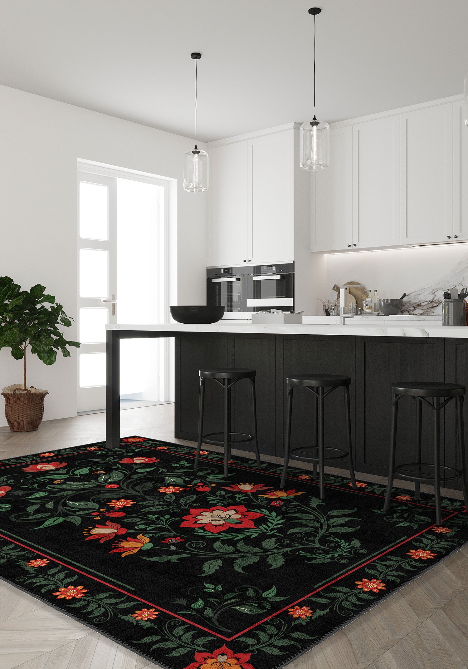 Amara Black Anatolian Rug – Heritage Florals on a Dramatic Backdrop