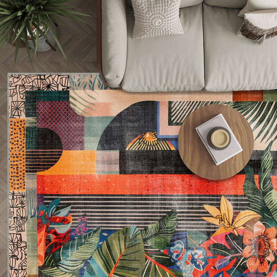 The Amias Colourful Floral Rug is a bold expression of creativity, blending vivid hues, eclectic patterns, and tropical-inspired floral motifs. This striking rug combines geometric shapes, playful polka dots, and vibrant flowers to create an eye-catching centerpiece that energizes any room. Ideal for eclectic, bohemian, and modern interiors, the Amias Rug brings artistic flair and visual excitement to your home decor.