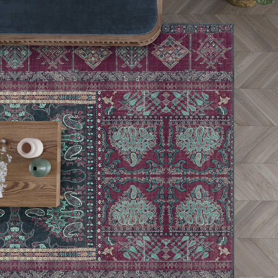 Andrew Burgundy Purple Vintage Washable Rug – A Blend of Classic Elegance and Modern Convenience