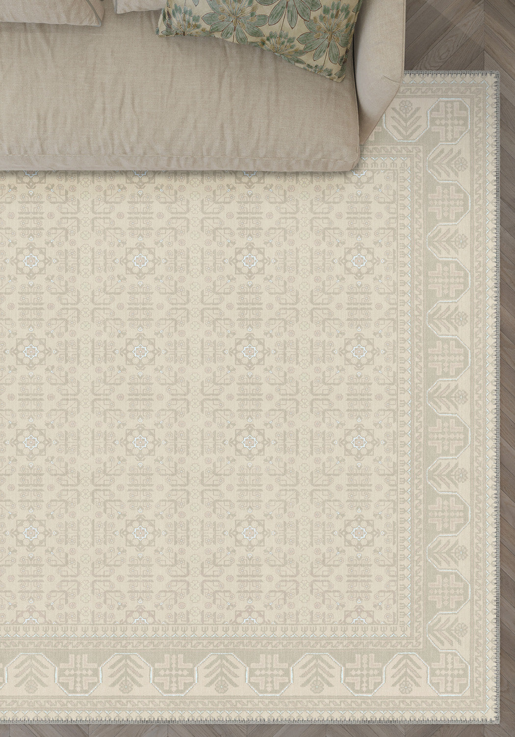 The Anya Cream Beige Rug captures the essence of minimalist charm with its subtle geometric motifs and soft cream-beige palette. This rug is designed to seamlessly integrate into both modern and traditional interiors, offering a neutral yet sophisticated foundation for any room.