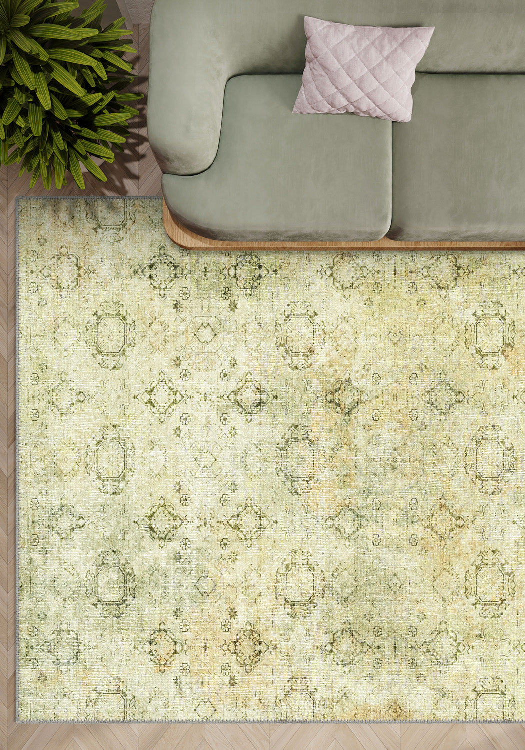 Ariana Green Vintage Washable Rug – Timeless Elegance for Modern Interiors