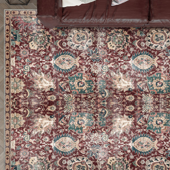 The Artemis Burgundy Oriental Rug exudes luxury and tradition with its rich burgundy tones and intricate Oriental patterns. Featuring elegant medallion and floral motifs in deep reds, soft creams, and subtle greens, this rug brings a sense of opulence to any room. Its vintage-inspired design, coupled with modern practicality, makes the Artemis Rug a beautiful choice for adding both grandeur and comfort to your home.