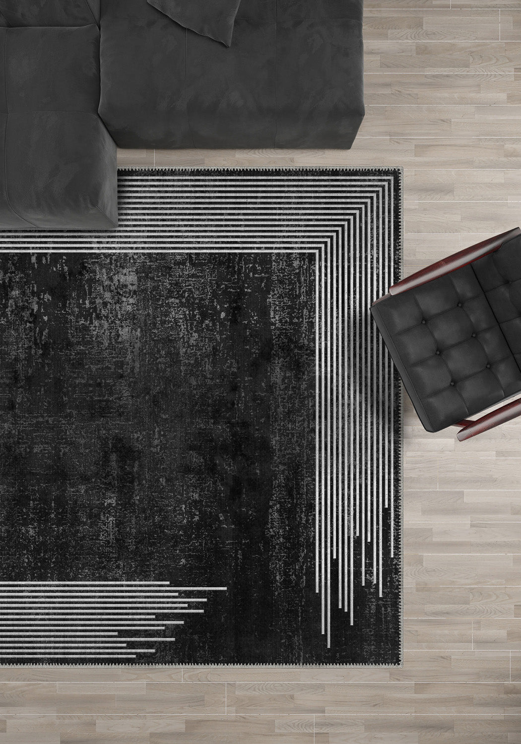 - Modern & Minimalist: This rug’s clean lines and monochromatic palette fit seamlessly into minimalist and modern spaces.