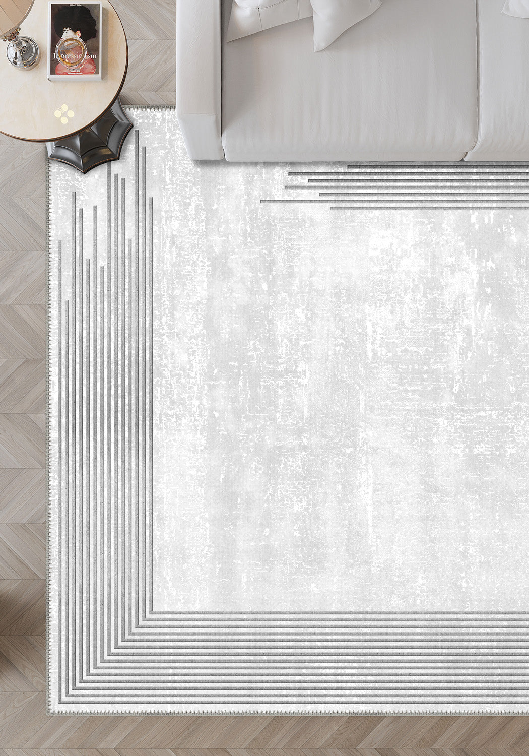 - Contemporary Linear Border: The modern border design adds a minimalist yet striking visual element to any space.