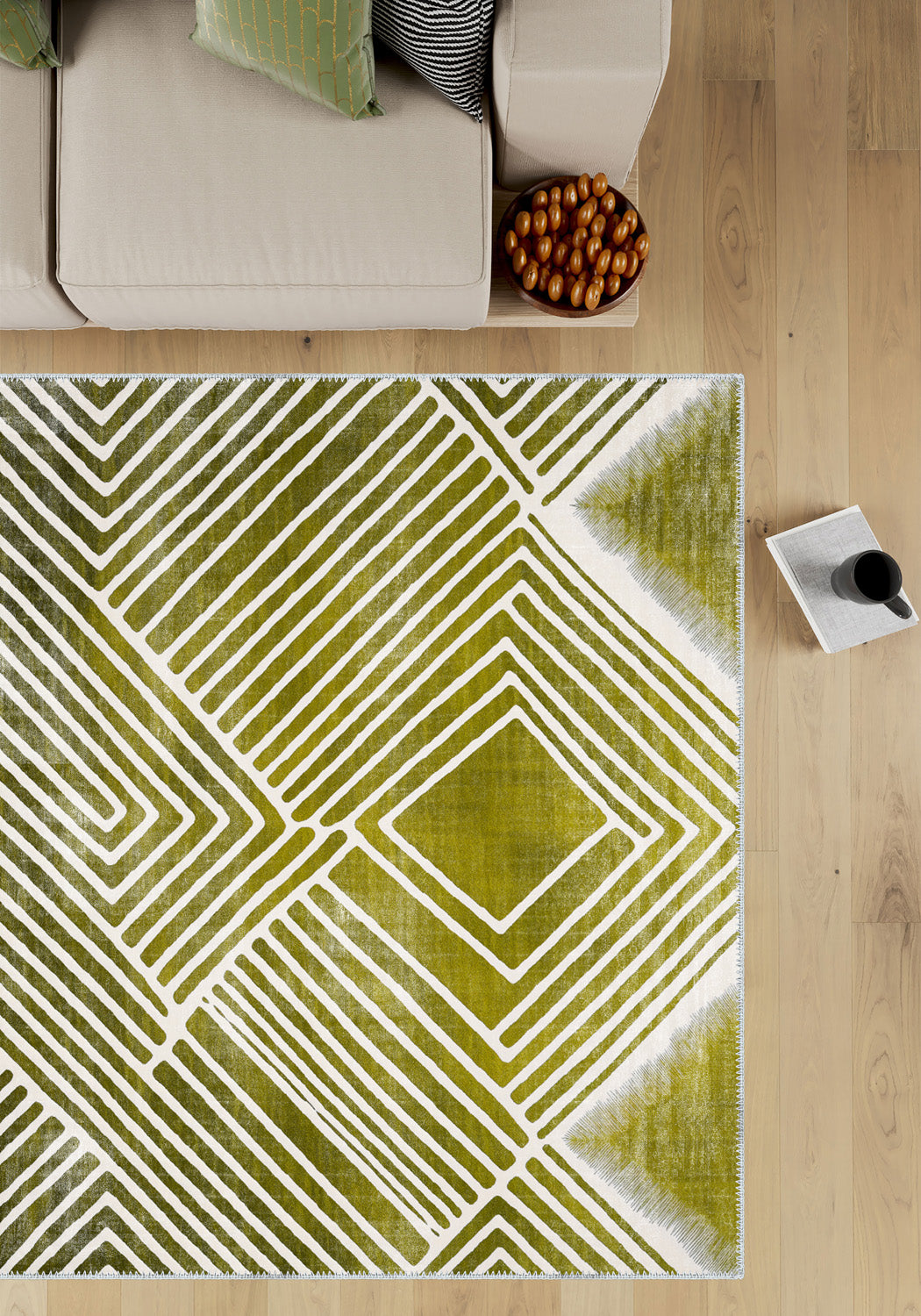 The Bram Olive Green Striped Washable Rug combines the rich, earthy tones of olive green with a modern striped pattern, making it an ideal piece for spaces seeking a connection to nature with a contemporary twist. Its practical washable design ensures easy maintenance without sacrificing style, making it perfect for busy homes that value both functionality and aesthetics.