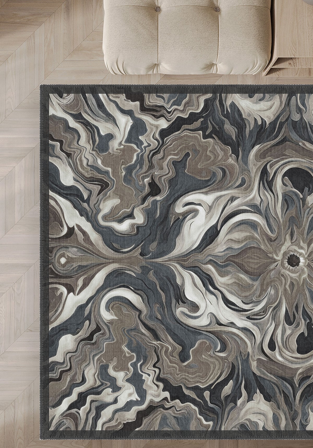 • Unique Abstract Design: The swirling patterns and versatile color scheme make this rug a statement piece that complements both neutral and bold interiors.