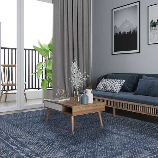 The Calyra Navy Modern Rug adds character and functionality to multiple spaces in your home: