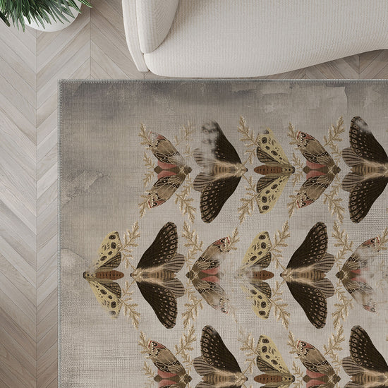 Celestia Beige Moth Rug – Nature-Inspired Elegance for Your Home