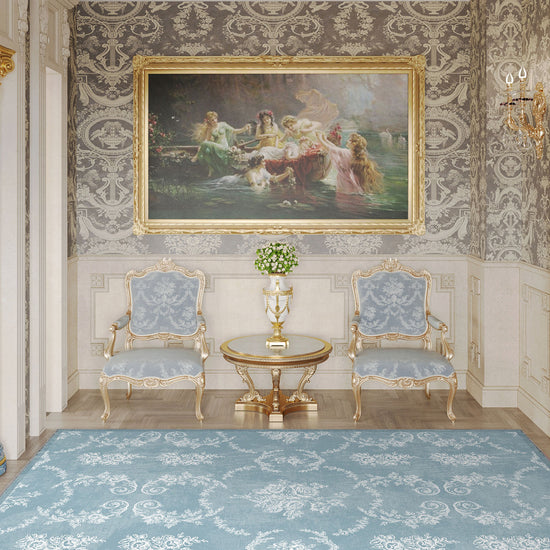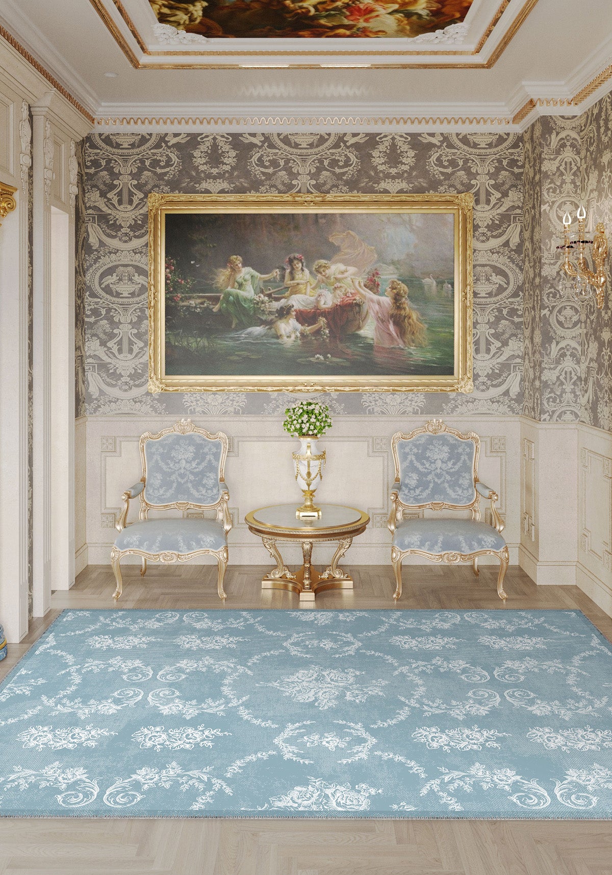 Serene and sophisticated, the Colette Blue Farmhouse Rug invites you into a world where soft florals and rustic elegance live in perfect harmony. With its dusty blue backdrop and delicate ivory motifs, this design whispers countryside poetry while feeling undeniably refined. It’s the sort of rug you’d find in an antique French villa—but made refreshingly practical for everyday life.