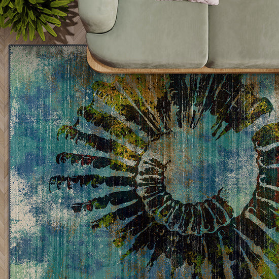 Add a touch of nature-inspired artistry to your home with the Daria Eclectic Fossil Rug. This unique piece features a bold fossil motif in earthy tones, contrasted by vibrant blues and greens, creating an eclectic masterpiece that breathes life into any space.