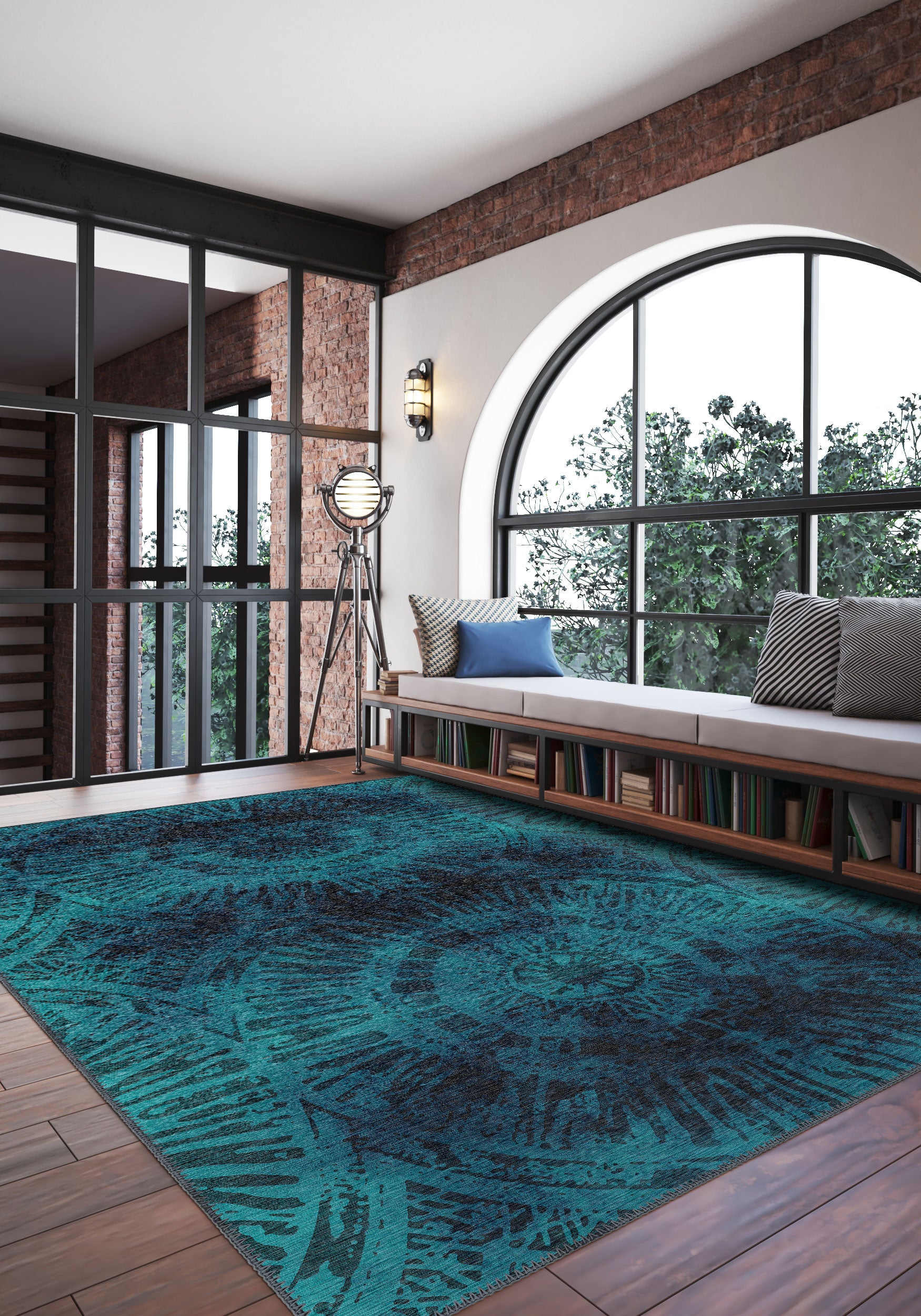 - Vibrant Teal Base: The deep teal background enhances the intricate patterns, creating a rug that is both eye-catching and elegant.