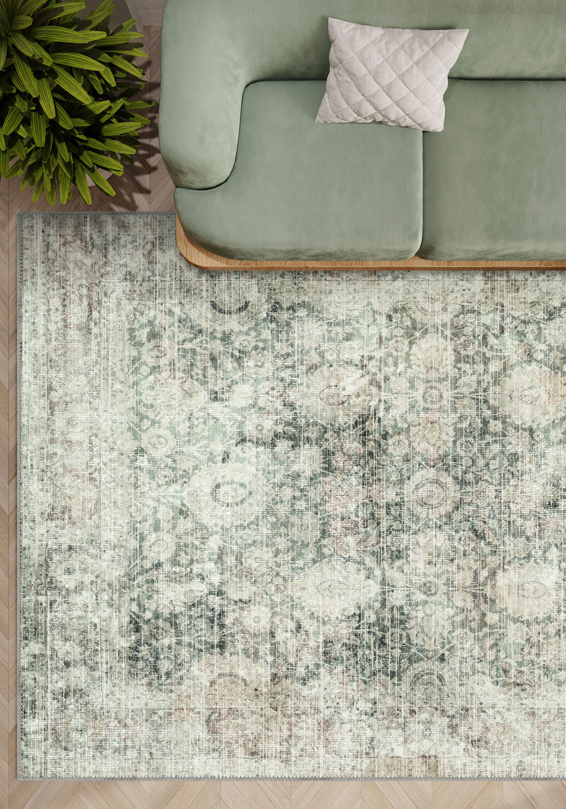 Ethan Green Erased Rug – Vintage Elegance Meets Contemporary Style
