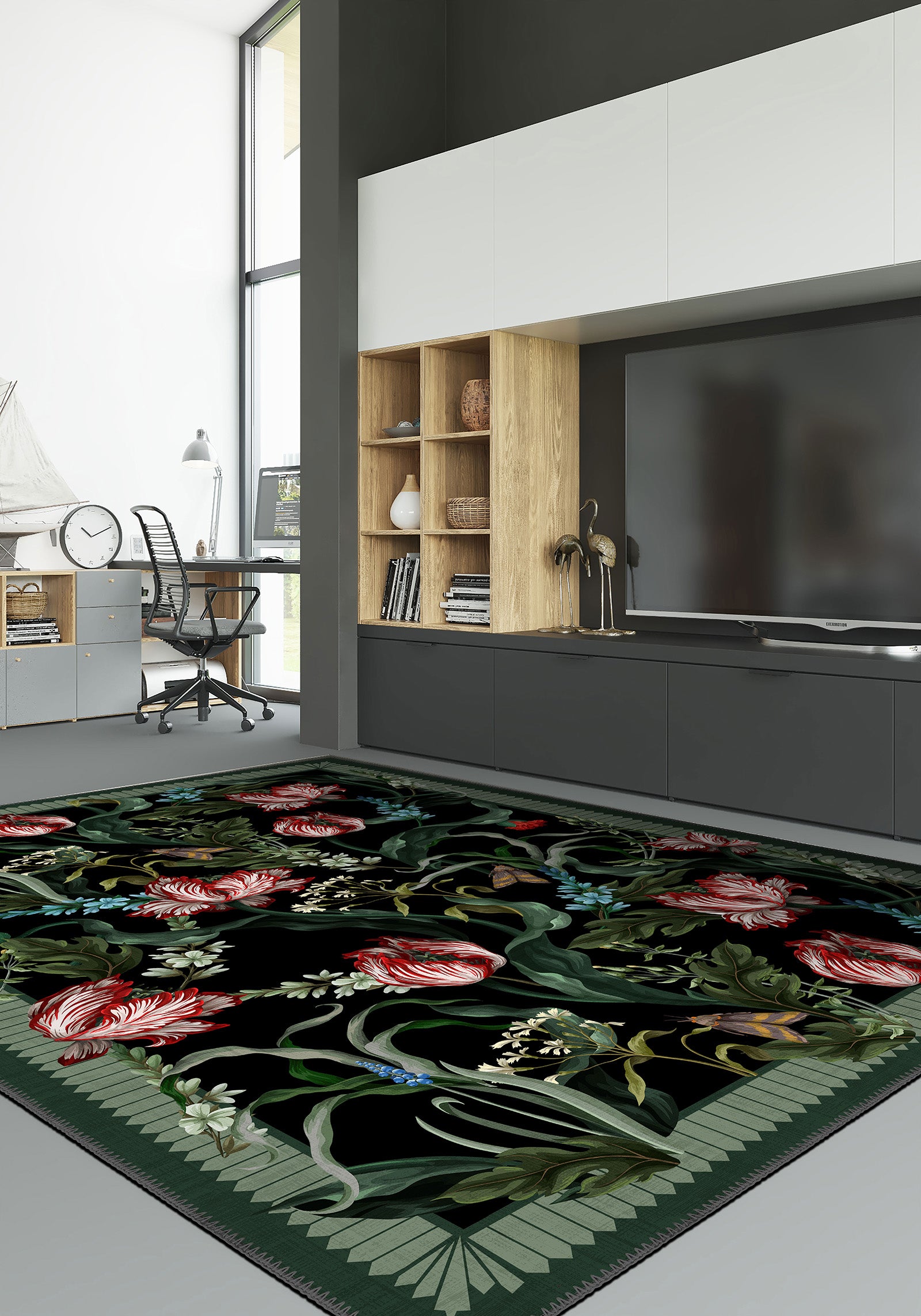 • Living Room: A captivating floral rug that becomes the heart of your space.