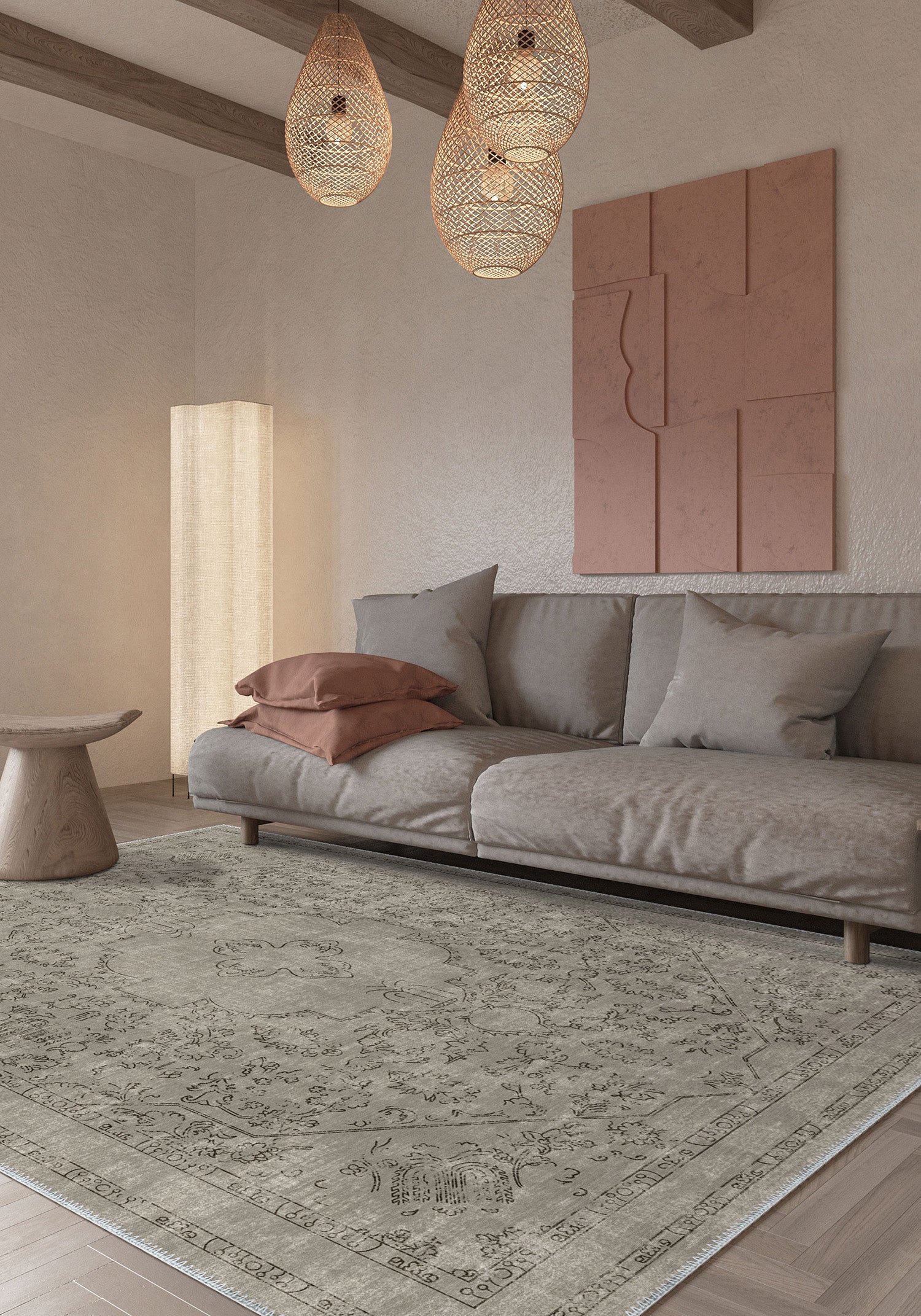 Gabriel Grey Washable Rug – Understated Elegance with a Vintage Touch