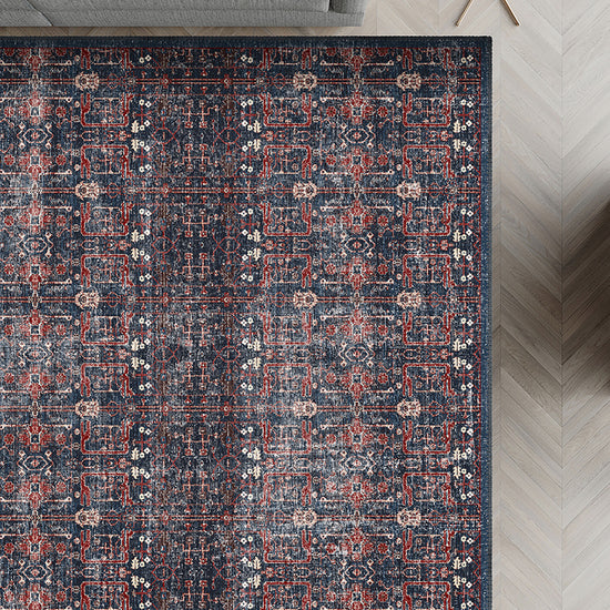 The Gaia Washable Navy Rug effortlessly combines the elegance of vintage-inspired patterns with the rich, bold tones of deep navy. Perfect for modern living, this rug’s timeless design adds a touch of sophistication to any room, while its washable nature ensures it remains as practical as it is beautiful.