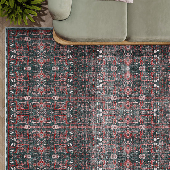 The Gaia Washable Teal Rug combines the timeless beauty of intricate vintage patterns with a rich, dark teal hue that brings an air of elegance to any room. Its deep colour palette exudes a sense of refinement, making it perfect for spaces seeking both style and practicality.