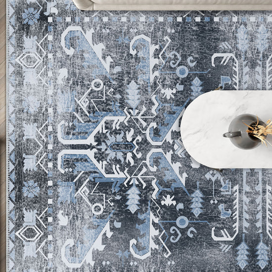 Grace Blue Erased Washable Rug – Modern Elegance with a Distressed Touch