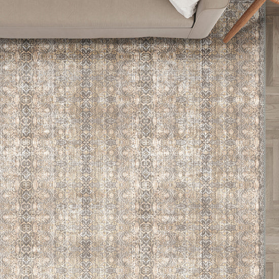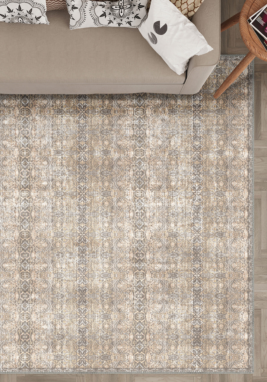 The Grandma Washable Traditional Rug brings timeless elegance to your home with its intricate pattern and soft, neutral hues. This rug perfectly balances the charm of vintage design with the convenience of modern living, making it a versatile addition to both traditional and contemporary spaces.