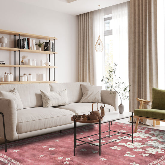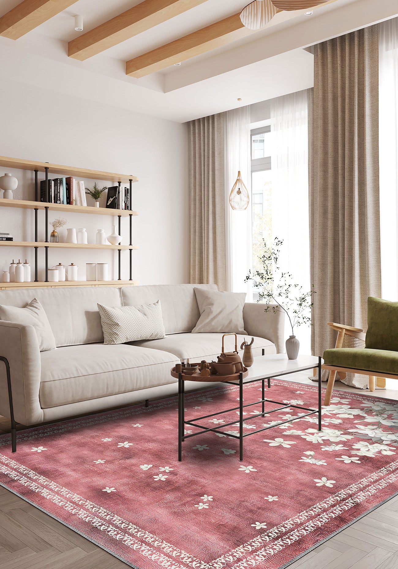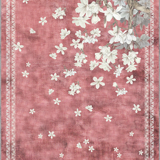 Like cherry petals caught in a spring breeze, the Hanami Pink Japanese Rug feels as if it has drifted straight from a Kyoto garden into your home. The dusty rose backdrop sets the stage for magnolia blossoms to dance across the surface, their delicate ivory petals softening every corner of your room. A finely detailed border gives this design its gentle structure—refined, yet never rigid.