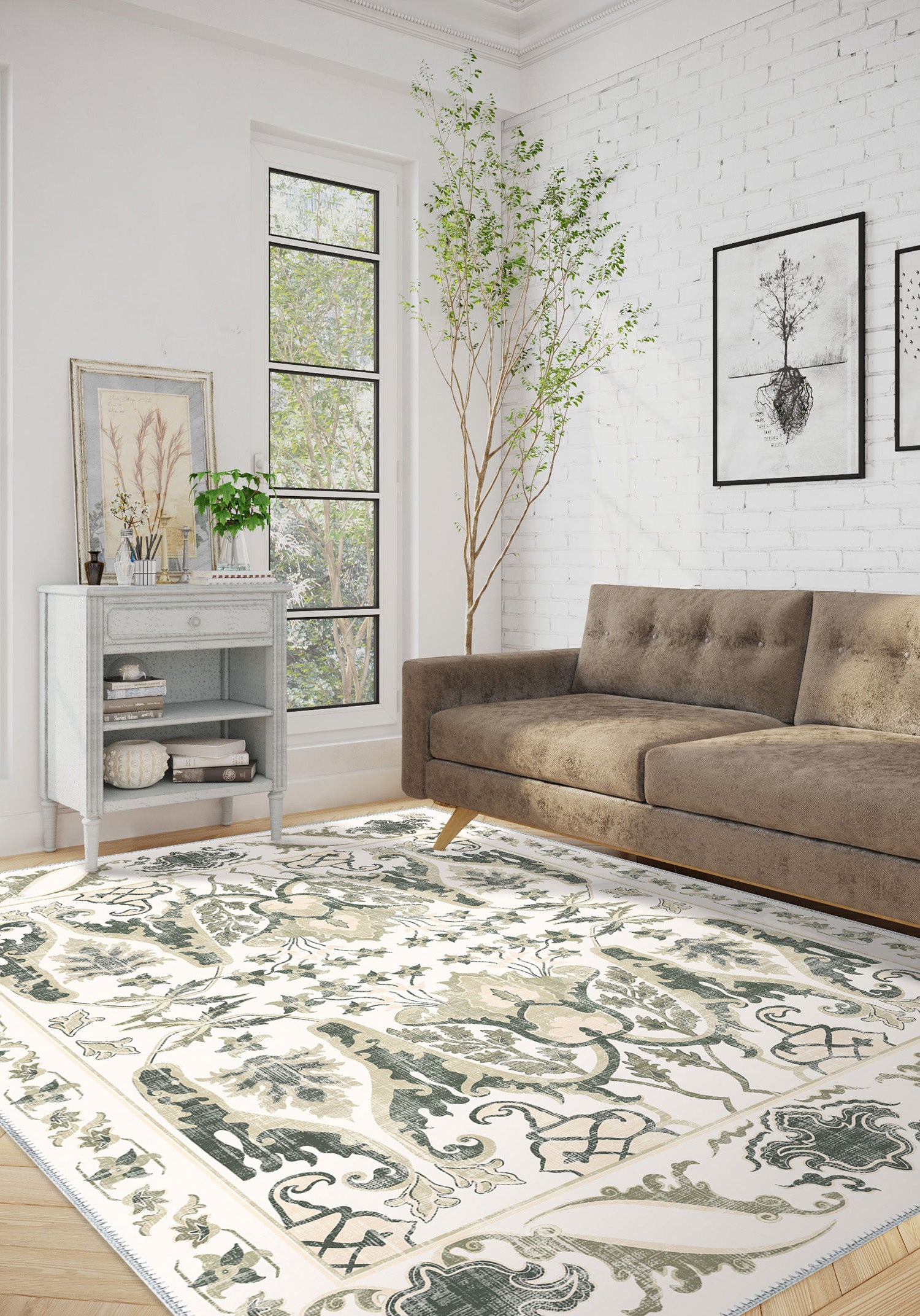 - Elegant vintage-inspired patterns in calming green and neutral tones