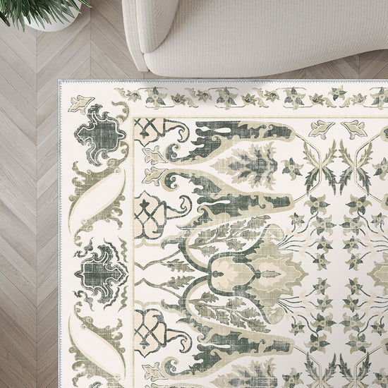 The Henry Green Vintage Rug is a harmonious blend of timeless design and modern practicality. Its intricate patterns and green tones add depth and elegance to any room, while its machine-washable construction ensures hassle-free maintenance. A beautiful and functional addition to any space.
