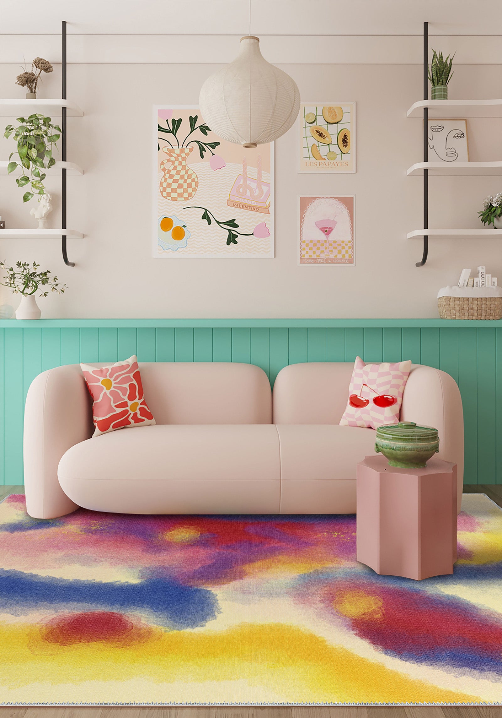 - Textural Appeal: The soft texture of this rug contrasts beautifully with its bold colours, offering both comfort and aesthetic appeal.