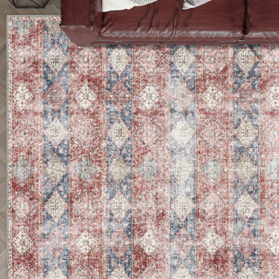 The Jordan Colourful Distressed Oriental Rug combines vintage charm with modern design. With a beautifully faded finish and a spectrum of earthy reds and blues, this rug offers a unique take on traditional oriental patterns. The distressed look adds character and a soft texture that fits effortlessly into contemporary, boho, or vintage-inspired interiors.