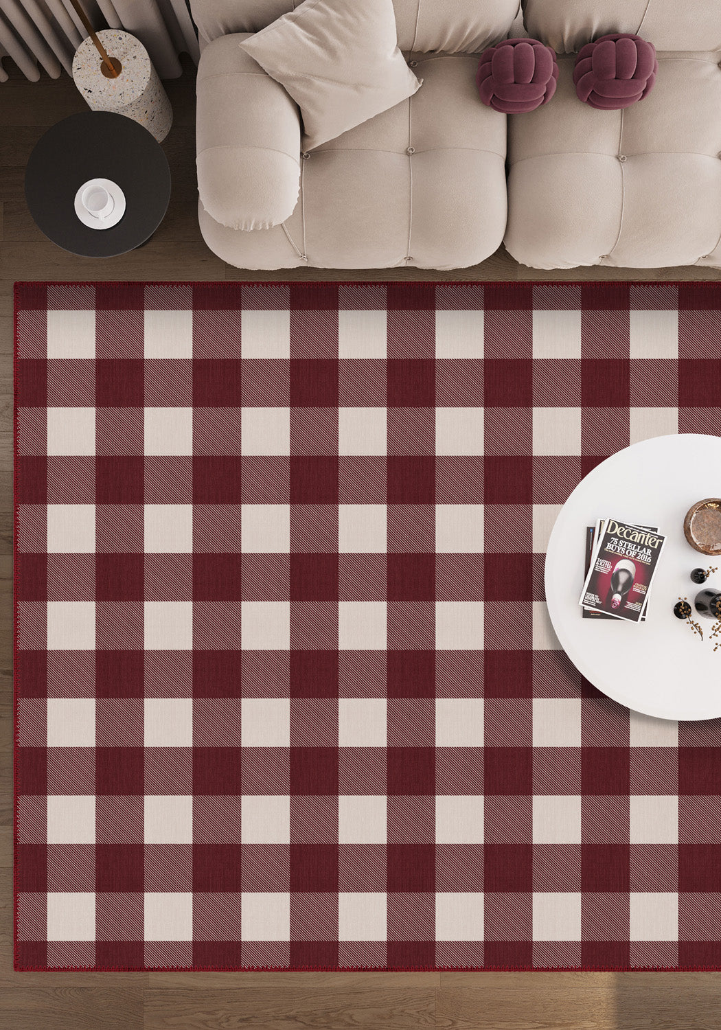 - Living Rooms: The bold red checkered pattern makes this rug a focal point in living spaces, adding energy and warmth to the room.