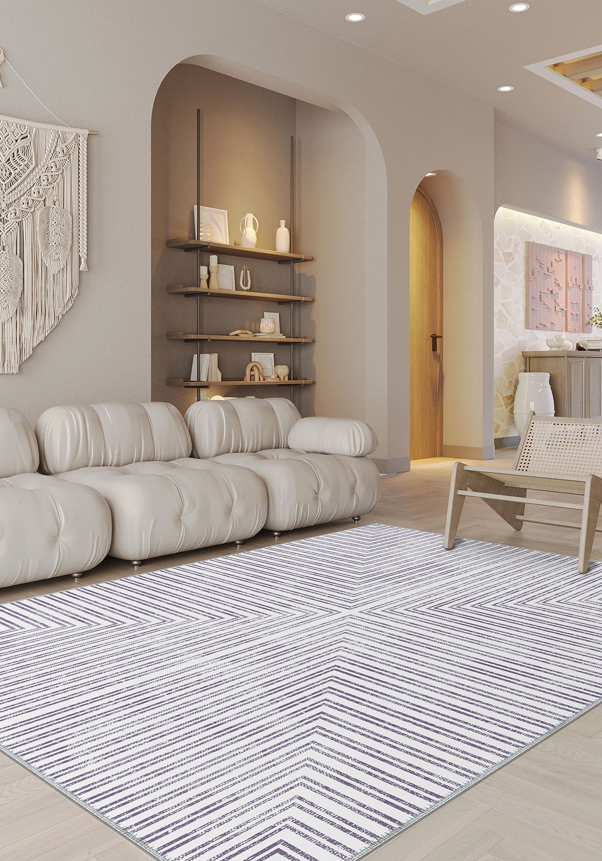 Designed for both function and flair, the Kylie Purple Striped Rug offers a contemporary vibe while ensuring easy maintenance. Its machine-washable construction makes it perfect for busy households, and the calming purple tones add a refreshing modern aesthetic to any space. Whether you’re decorating a cozy corner or revamping a large area, this rug is the perfect choice for timeless elegance.