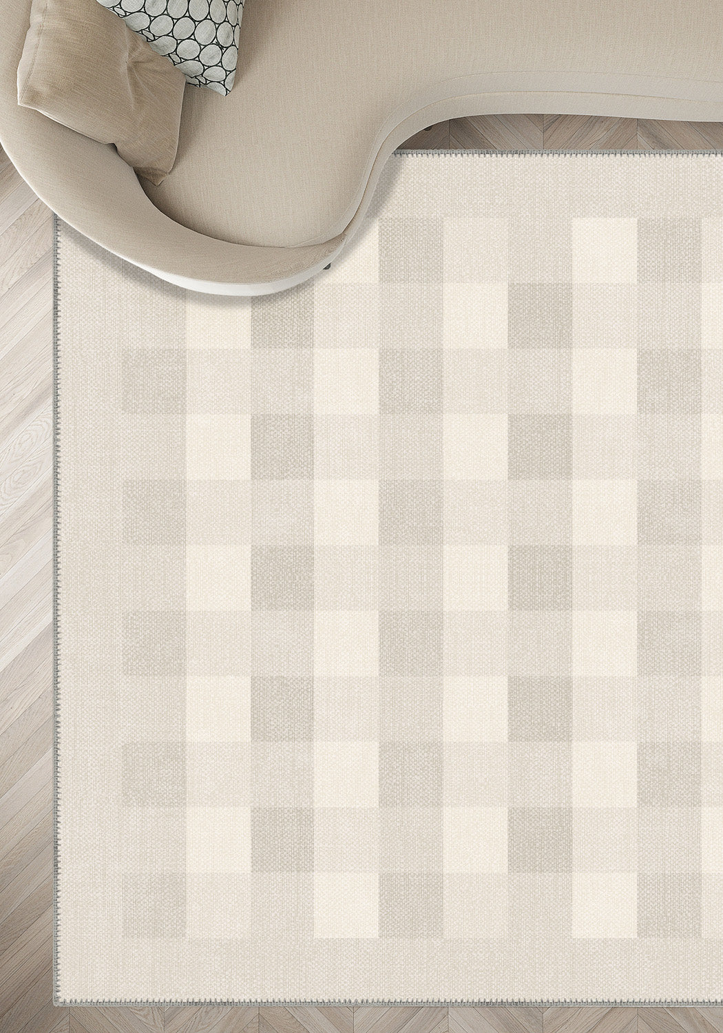 • Soft cream and ivory checkered pattern for a soothing, neutral look