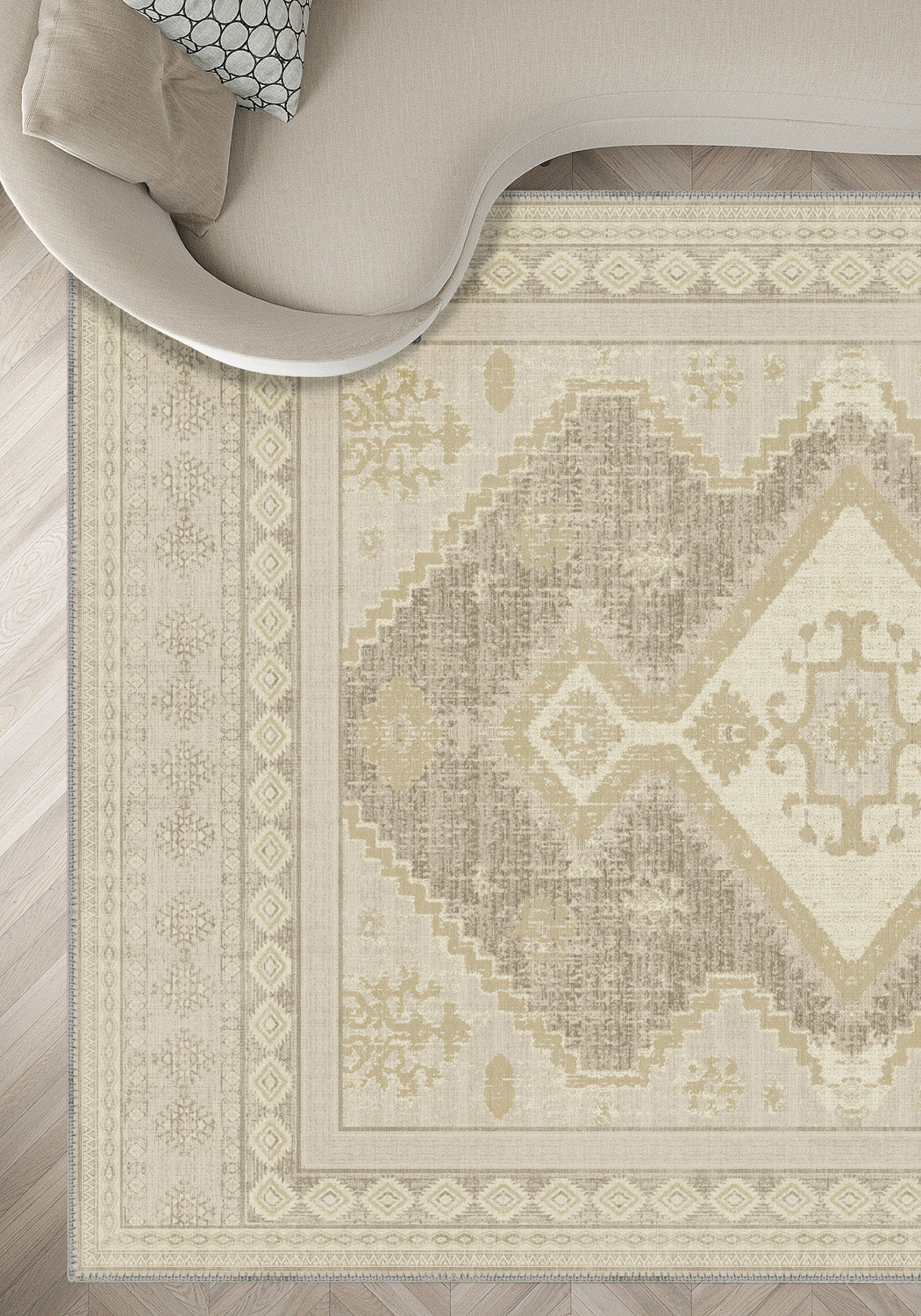 • Neutral Colour Palette: Featuring soft beige, ivory, and taupe hues, this rug effortlessly blends with various interior styles, adding warmth without overpowering your space.
