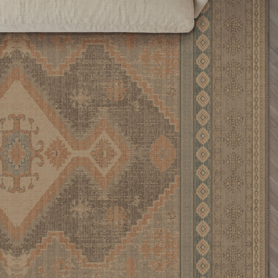 - Warm Earthy Palette: Featuring warm browns, deep oranges, and subtle teal accents, this rug brings a natural, inviting feel to your space.