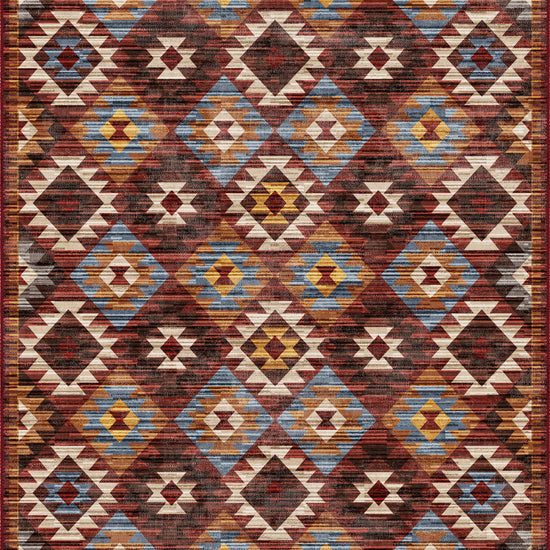 - Vibrant Color Palette: The bold mix of burgundy, blue, yellow, and earthy tones creates a dynamic look that is sure to stand out in any room.