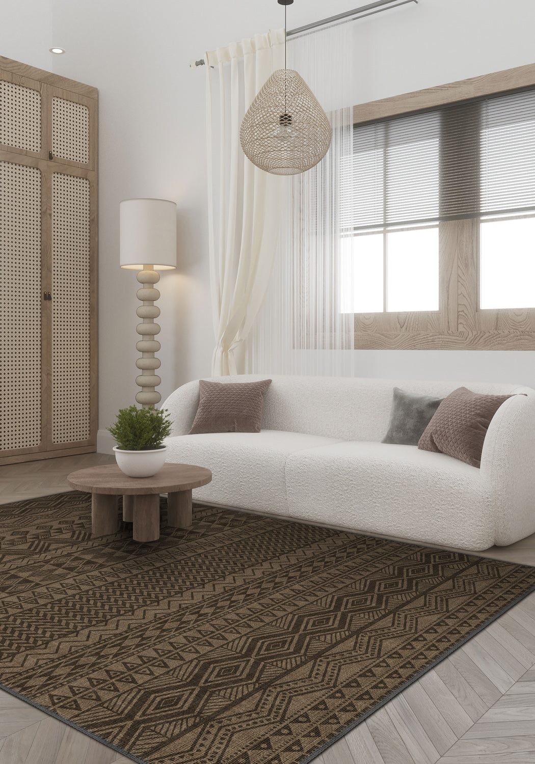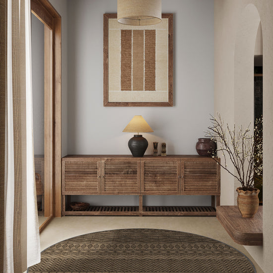 Whether you’re styling a rustic interior, a tribal-modern loft, or a contemporary flat with eclectic touches, Naya’s dynamic geometry works beautifully. Its layered bands of chevrons, diamonds, and herringbones pull the eye across the room—balancing structure with expressive detail.