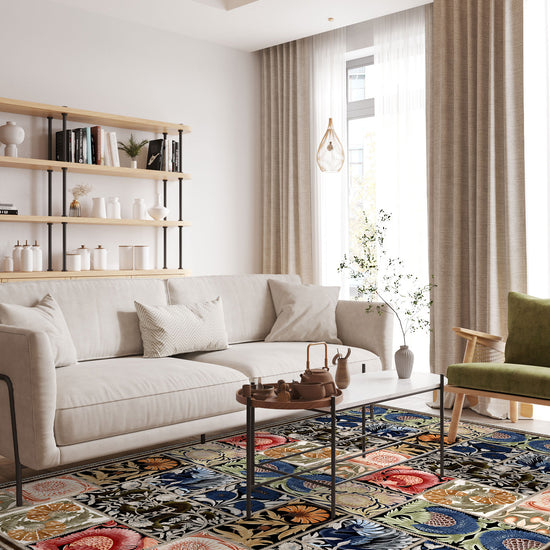The Nerida Patchwork Rug is an ode to artful abundance. With a lush tapestry of floral blocks in shades of indigo, coral, olive, terracotta, ochre, and sage, this rug is a rich mosaic of pattern and palette. Drawing on vintage botanical prints and archival illustrations, it captures the spirit of a curated antique collection—thoughtful, bold, and effortlessly layered.
