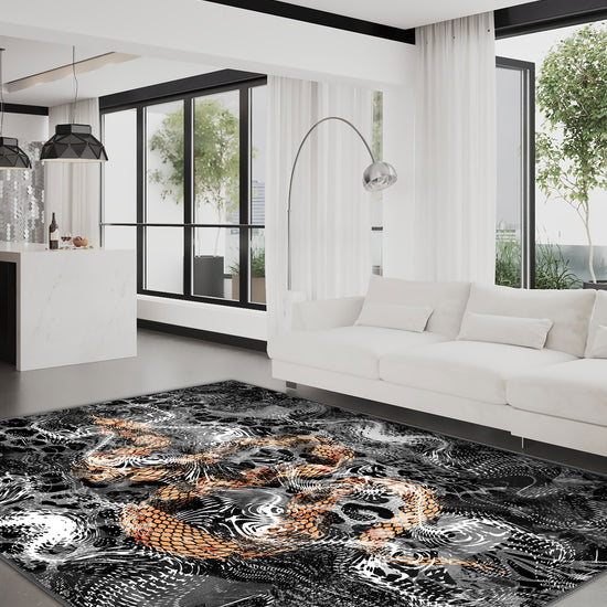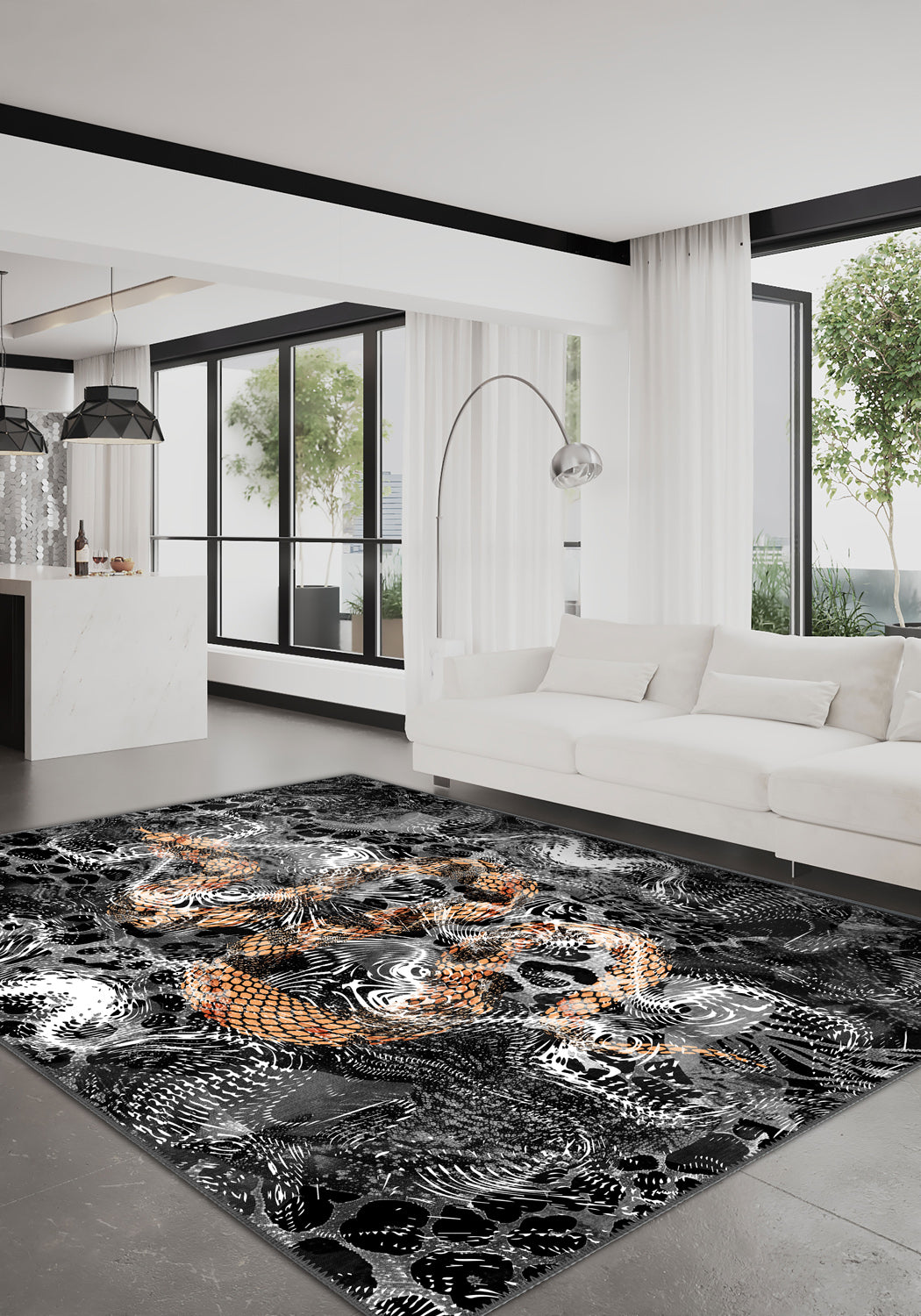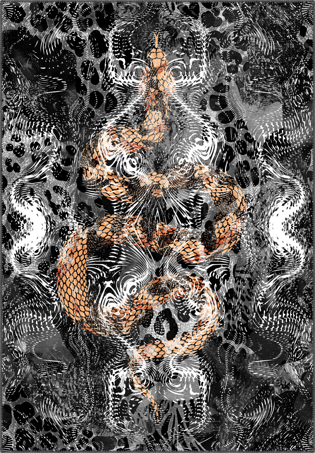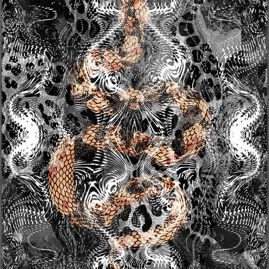 The layers. The movement. The barely-there but unmistakable presence of a coiled serpent woven through distorted animal forms and digital chaos. It’s art. It’s fashion. It’s instinct. With Nyra, your floor doesn’t whisper—it purrs, hisses, and owns the room.