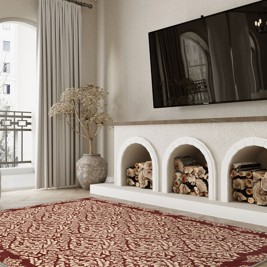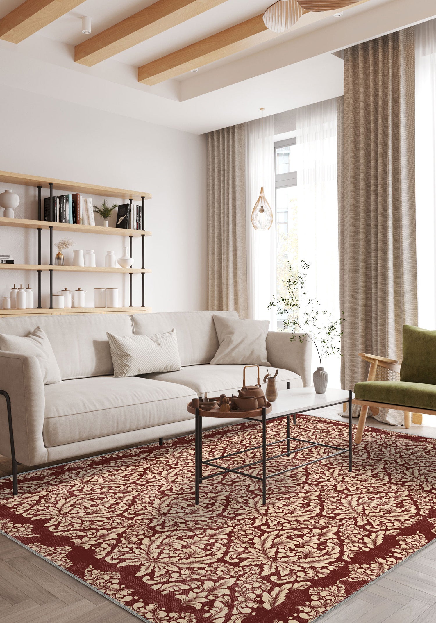 This rug brings drama without the dust. It offers all the grandeur of traditional woven rugs with the modern practicality of a machine-washable, hypoallergenic design. The warm terracotta hue flatters dark wood, brass accents, and velvet textures—but it’s equally arresting when contrasted with minimalist or industrial spaces for a rebellious twist.