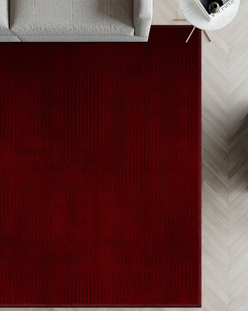 Free from busy motifs, this solid red rug relies on depth and texture to create interest. The softly distressed surface and gentle horizontal variation allow the crimson tone to shift in the light, adding dimension without distraction.