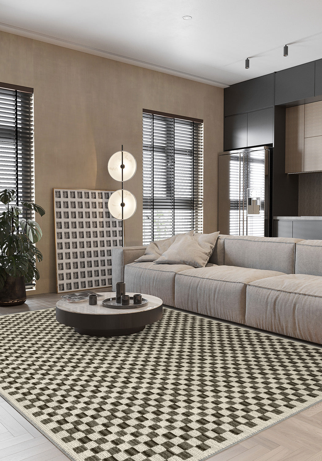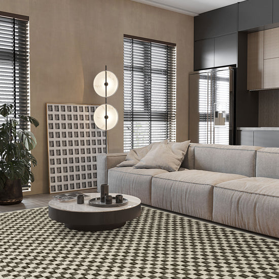- Earthy Elegance: Featuring a beige and brown palette, this checkered rug brings warmth and texture, making it an ideal foundation for both minimalist and traditional décor.
