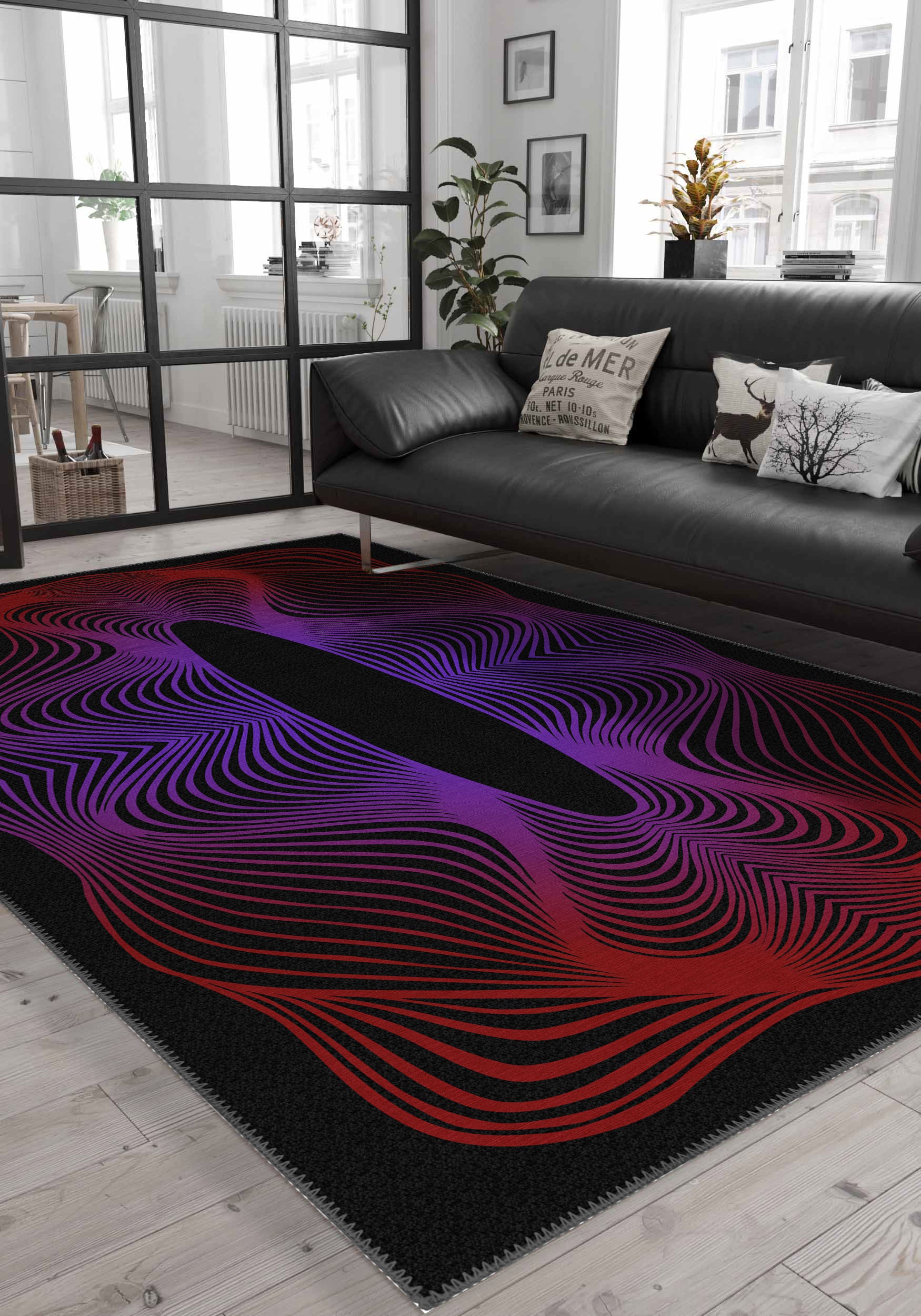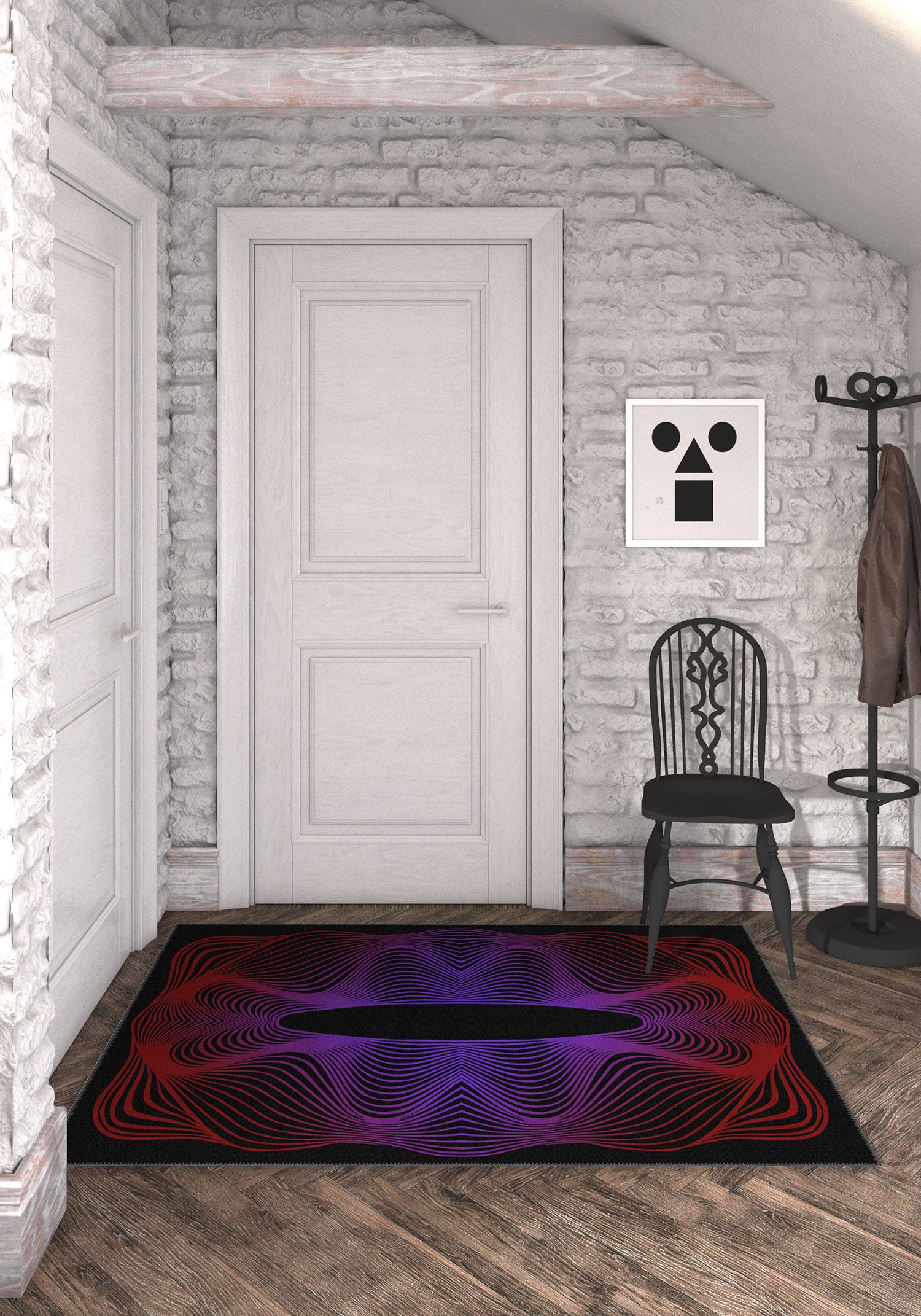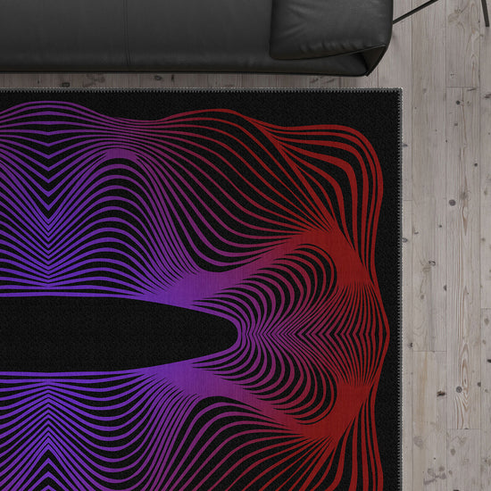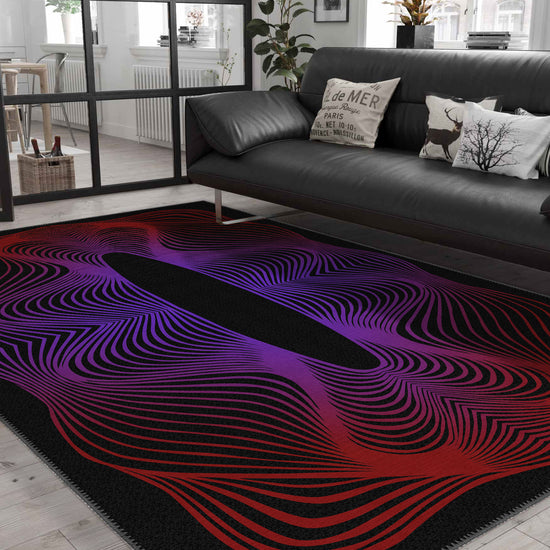 Immerse yourself in the hypnotic allure of the Optio Purple Op Art Rug. With a mesmerizing gradient of deep purples and rich reds set against a bold black backdrop, this rug embodies the perfect fusion of modern art and dynamic movement. Its fluid lines create a striking visual effect, making it a bold centrepiece for contemporary interiors.