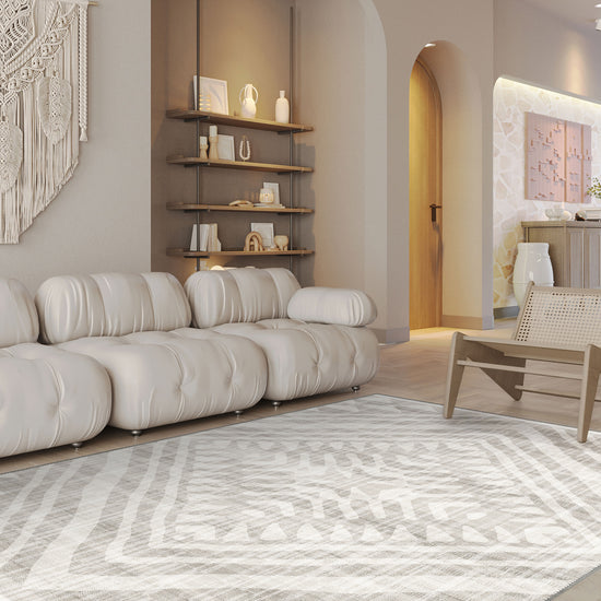 Add a touch of boho elegance to your home with the Persephone Boho Washable Rug. Featuring an intricate design with soft, neutral tones, this rug brings a unique blend of art and comfort that complements both modern and rustic spaces.