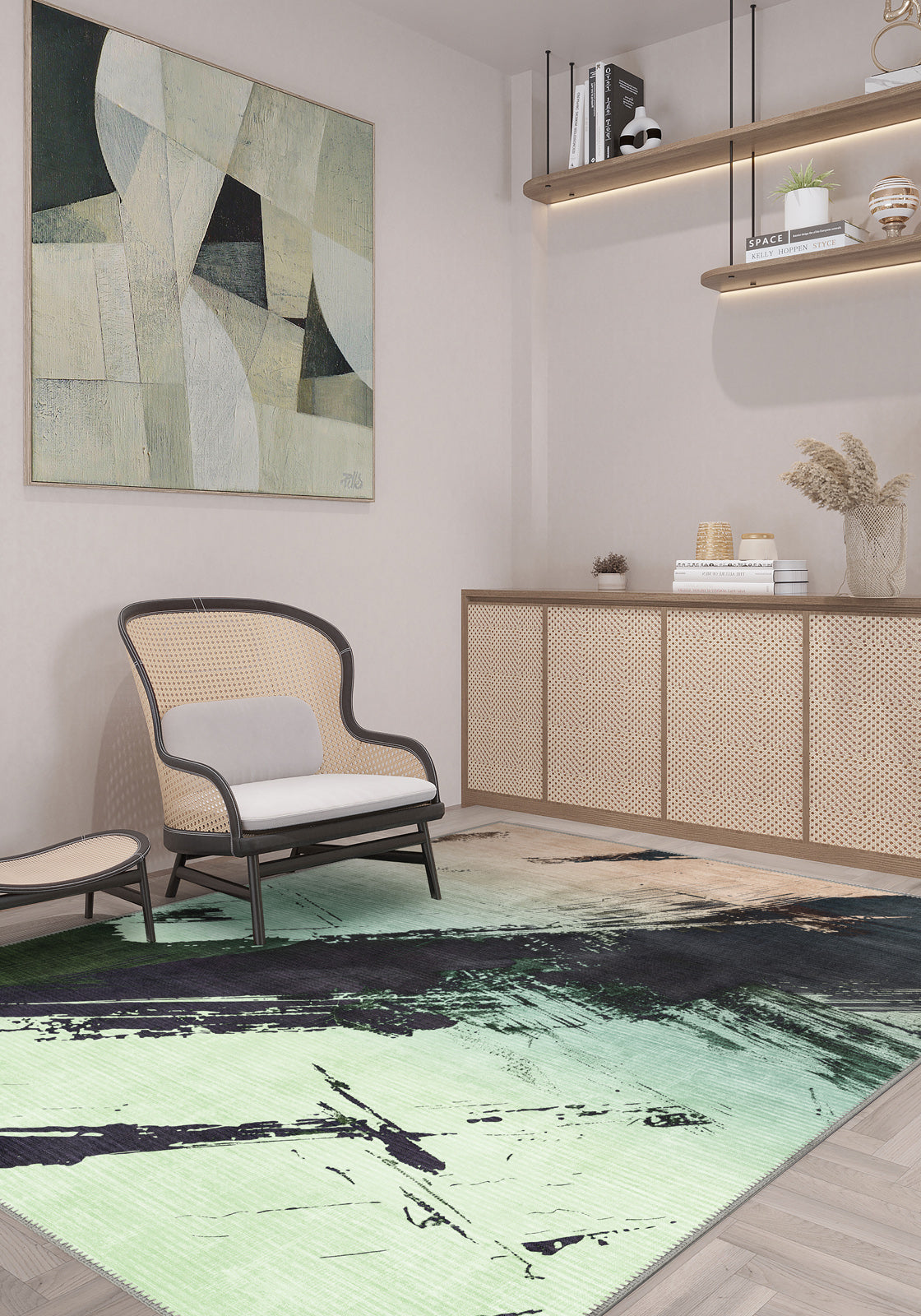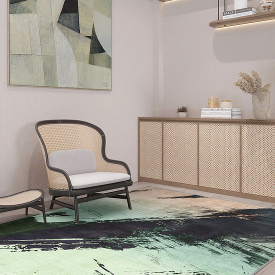 Silva Green Abstract Rug – A Brushstroke of Quiet Drama