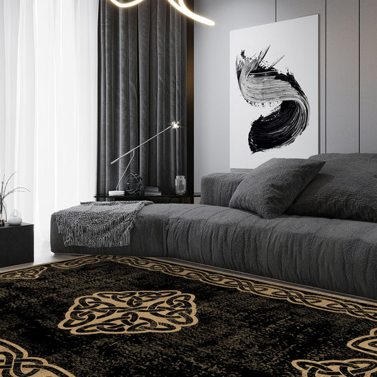 Sorin Black Celtic Rug – Dark Elegance Woven with Ancestral Power