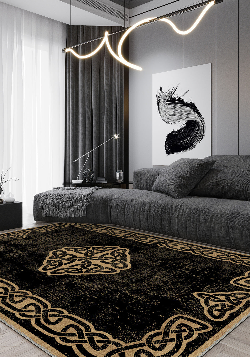 Because dark doesn’t mean dull. This washable Celtic rug is bold, expressive, and timeless—a piece that weaves myth, art, and function into every thread.